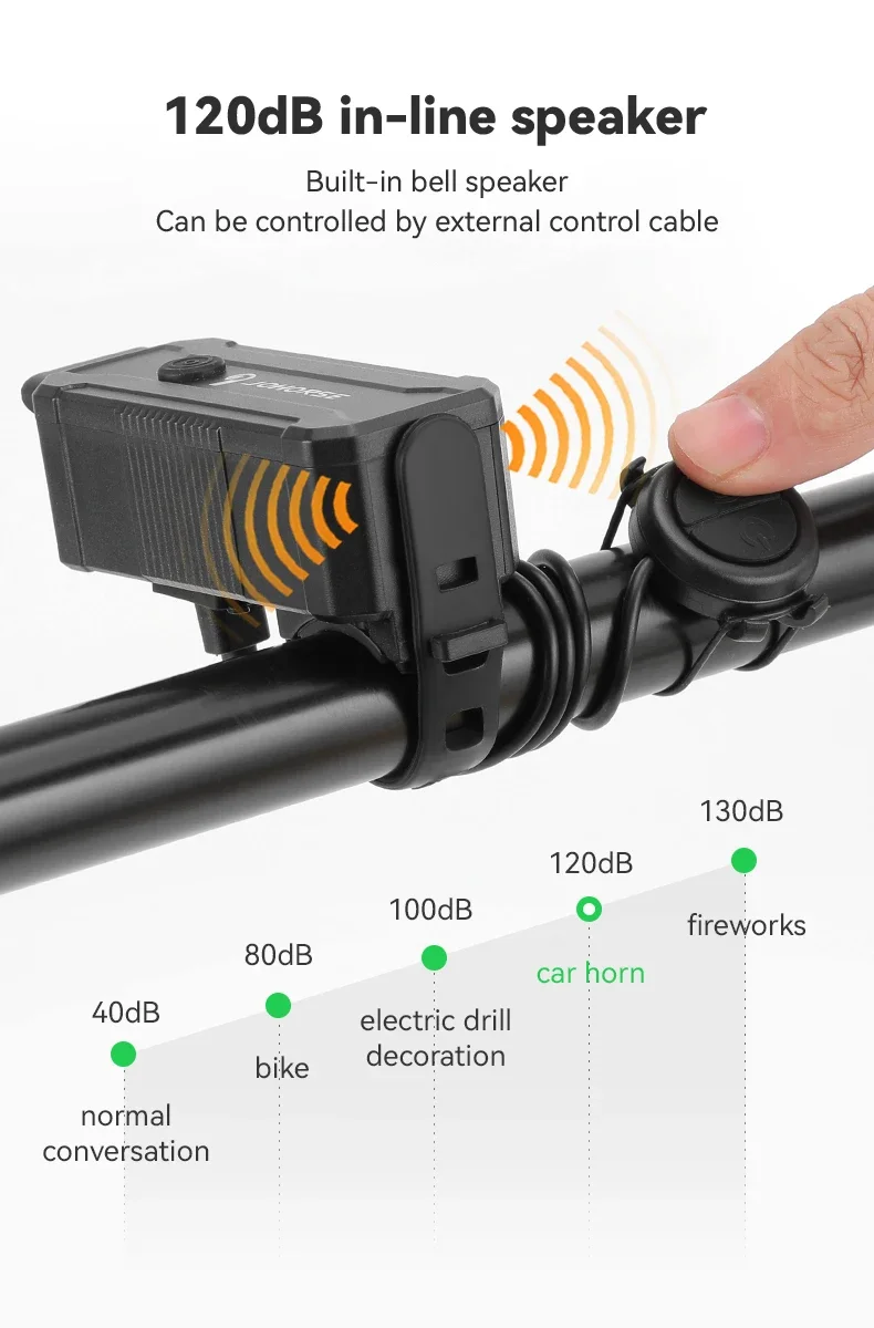جرس كهربائي مدمج بحجم يصل إلى 120 ديسيبل، يمكن تشغيله بسهولة عبر سلك تحكم خارجي.مثالية للركوب الحضري، وتعزيز السلامة.