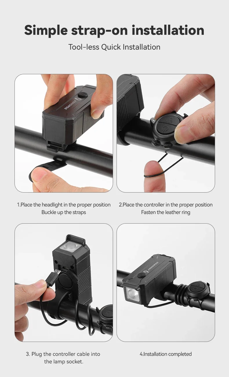 لا توجد حاجة لأي أدوات، سهلة التركيب.قم بتأمين ضوء الدراجة ووحدة التحكم في المواضع المناسبة وقم بتوصيل الكابل للإعداد السريع.